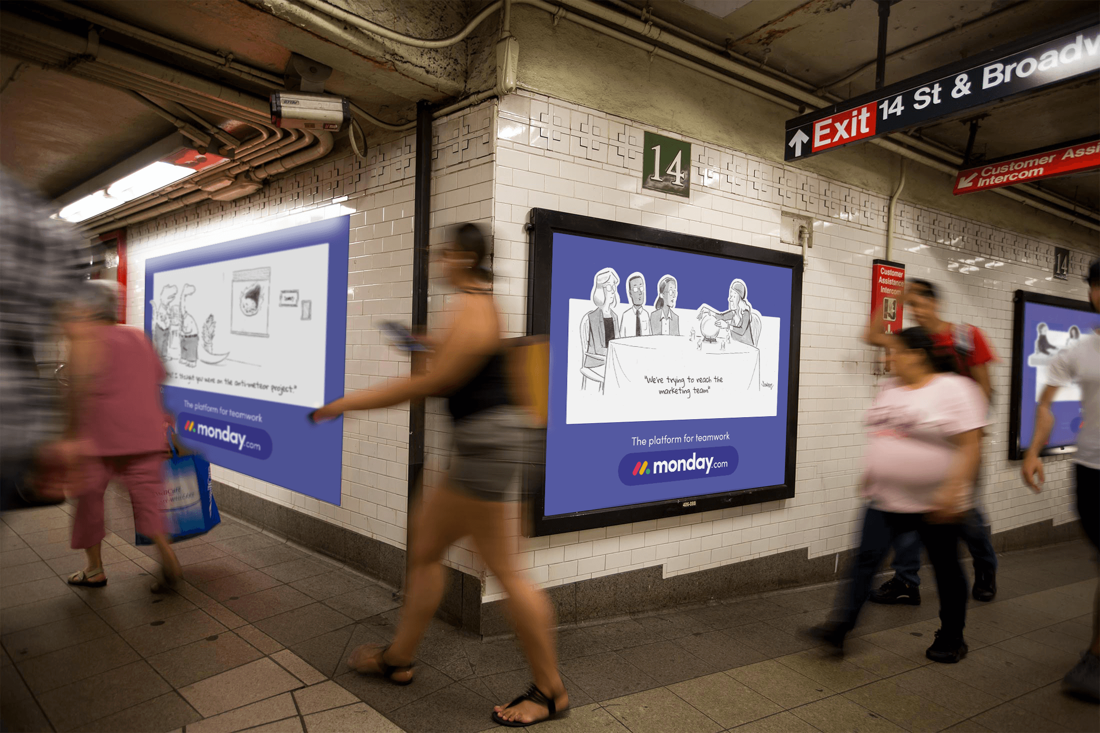 As part of monday.com's awareness efforts, we took over NY subways carts and platforms with a 'dictionary' of made-up words describing teams' and managers' everyday work life.